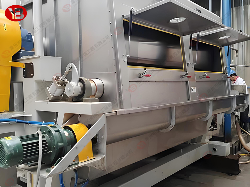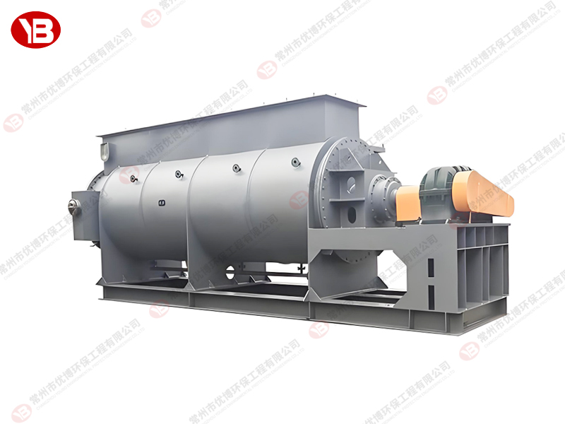 (1) .設備結構緊湊,污泥烘干設備裝置占地面積小。干燥所需熱量主要是由排列于空 心軸上的空心葉片壁面提供,而夾套壁面的傳熱量只占少部分。所以單位體積設備的傳熱面大,可節省設備占地面積,減少基建投資。??(2) .熱量利用率高。污泥干燥設備采用傳導加熱方式進行加熱,所有傳熱 面均被物料覆蓋,減少了熱量損失;熱量利用率可達85%以上。?···